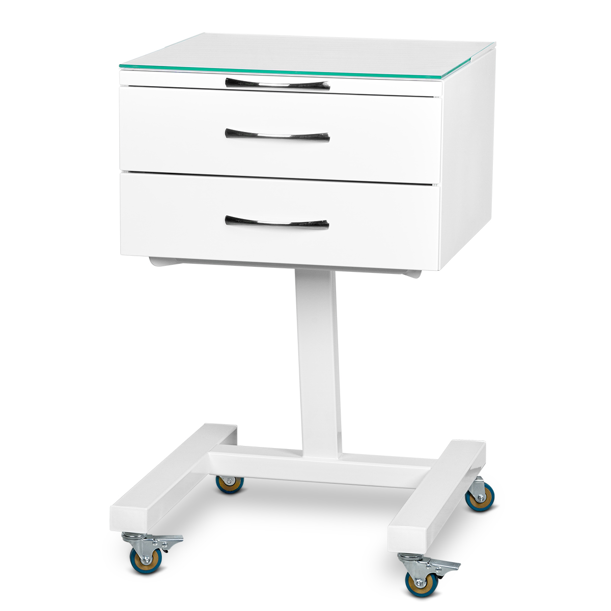 Передвижной медицинский инструментальный столик состоит из столешницы и 4-х ящиков.