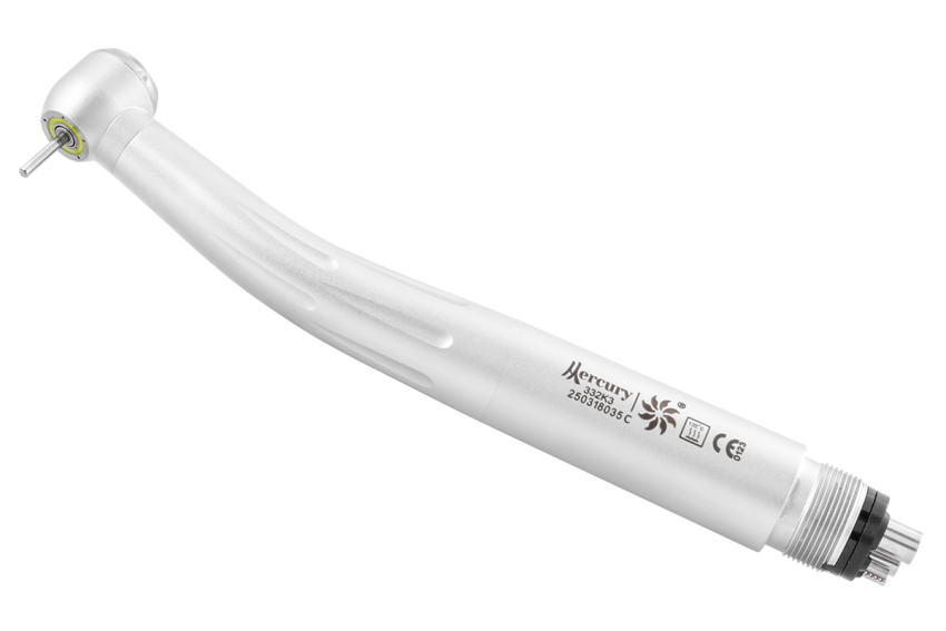 Наконечник Mercury 332K3 оснащен генератором света, благодаря которому процесс работы станет более точным и удобным. Тип установки света - кольцевой диод, что позволяет более точно осветить место, с которым работает врач. Светодиод не требует много электроэнергии.