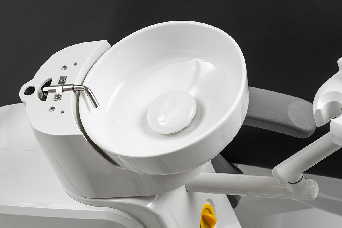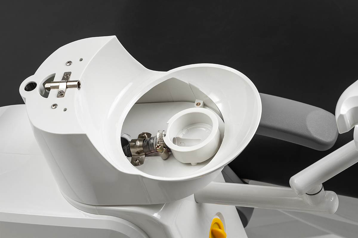 • Плевательница поворачивается на 90 градусов, выполнена из двух частей.