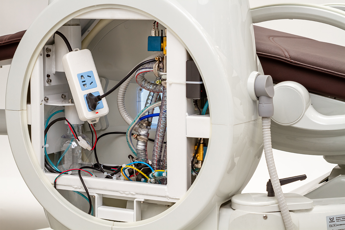 - Эксклюзивный дизайн модуля врача с дополнительным столом для инструментов, встраиваемый электрический мотор со светом и скейлер со светом.
