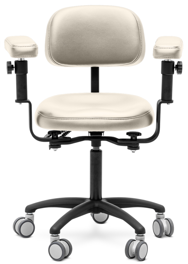 Стул можно легко отрегулировать под ваши индивидуальные параметры. Он очень легко перемещается по кабинету благодаря бесшумным колёсам Steinco.