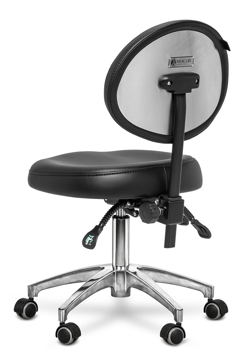 Ещё одно достоинства стула врача Mercury — конструкция колес. Дополнительная прорезиненная часть колесиков позволяет бесшумно перекатывать стул. Колесики не скрипят и без затруднений поворачиваются в нужную сторону. Антибактериальное покрытие гарантирует безопасность и стерильностью использования.