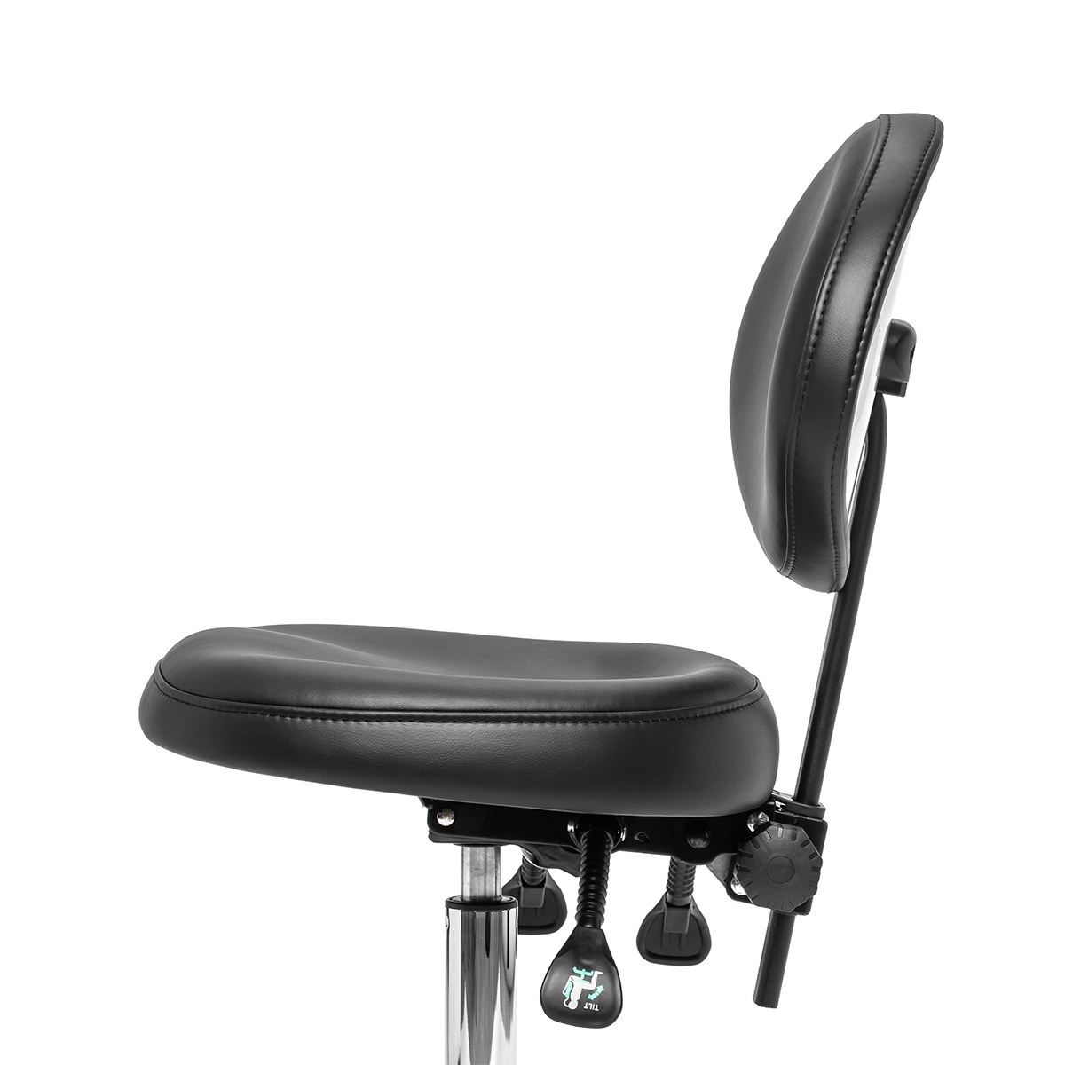 Обшивка спинки стула выполнена из того же материала, что и сиденье. Оно столь же долговечно, стильно и гипоаллергенно. Спинка позволит вам расслабить спину, облокотившись на нее. Она способна выдерживать большой вес. Максимальный угол наклона спинки составляет 25°. Более того, высоту спинки можно регулировать по удобному уровню, что делает стул еще более удобным и универсальным.